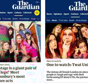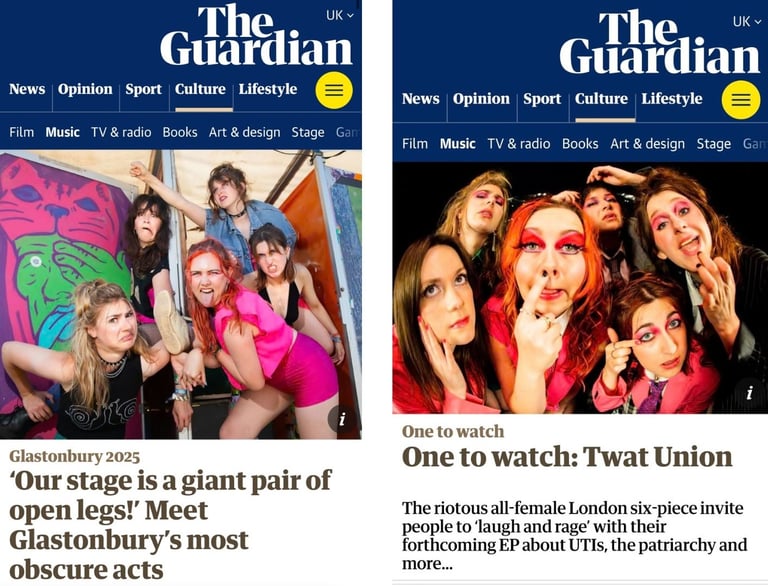 Kate is the lead singer and co-producer for Twat Union's release Don't Look It In The Eye and upcoming 2026 release that has been featured and reviewed in the Guardian twice this year